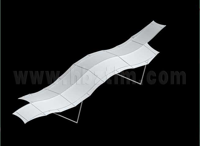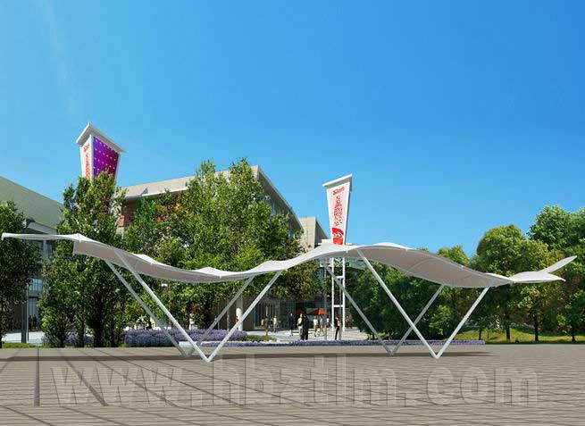 膜材采用PVDF国产或者进口建筑膜材、PTFE玻璃纤维建筑膜材、ETFE透明的永久性建筑膜材;自动放样裁剪,高频焊接,拉伸效果超强,曲线成型可千变万化;膜材质保一般可达15-20年。