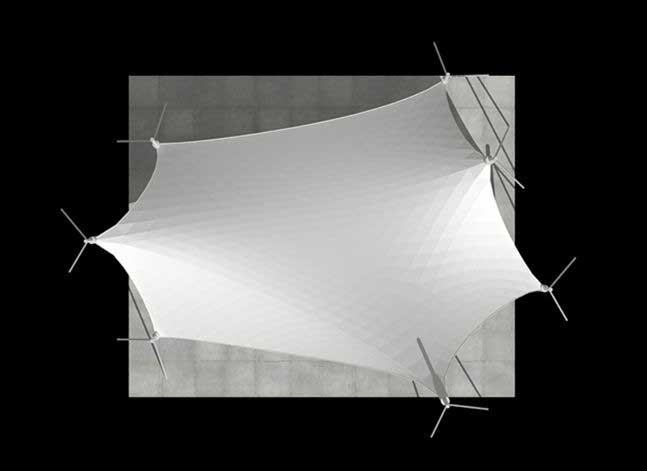 该项目是典型的景观张拉膜结构,俗称飞燕。膜材采...