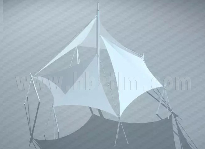 膜材采用PVDF国产或者进口建筑膜材、PTFE玻璃纤维建筑膜材、ETFE透明的永久性建筑膜材;自动放样裁剪,高频焊接,拉伸效果超强,曲线成型可千变万化;膜材质保一般可达15-20年。
