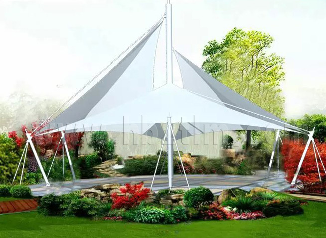 该项目为永久式景观遮阳伞,其结构为内撑式冒顶膜...