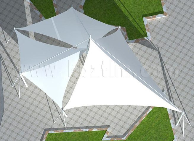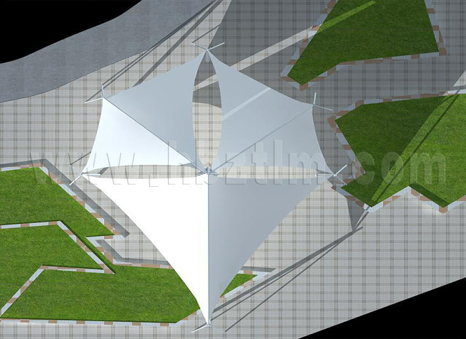 膜材采用PVDF国产或者进口建筑膜材、PTFE玻璃纤维建筑膜材、ETFE透明的永久性建筑膜材;自动放样裁剪,高频焊接,拉伸效果超强,曲线成型可千变万化;膜材质保一般可达15-20年。