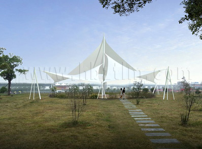 该项目是典型的景观张拉膜结构,俗称飞燕。膜材采...