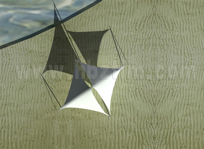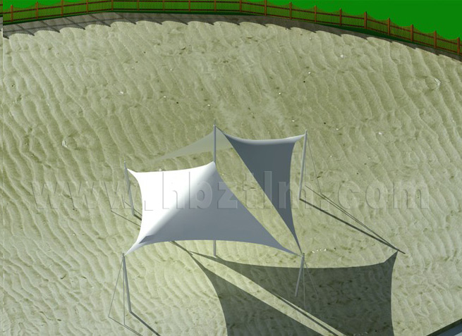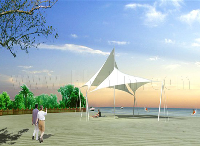 膜材采用PVDF国产或者进口建筑膜材、PTFE玻璃纤维建筑膜材、ETFE透明的永久性建筑膜材;自动放样裁剪,高频焊接,拉伸效果超强,曲线成型可千变万化;膜材质保一般可达15-20年。