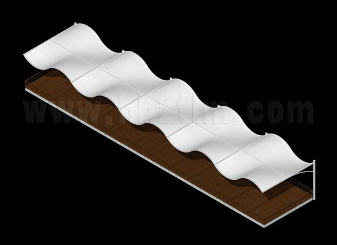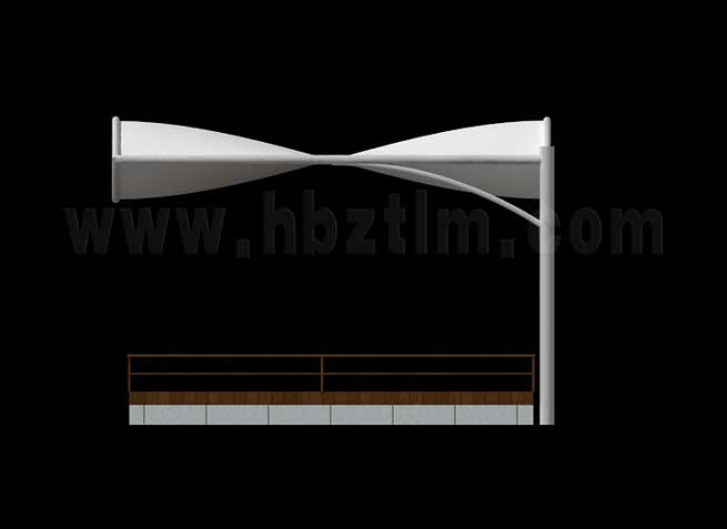 膜材采用PVDF国产或者进口建筑膜材、PTFE玻璃纤维建筑膜材、ETFE透明的永久性建筑膜材;自动放样裁剪,高频焊接,拉伸效果超强,曲线成型可千变万化;膜材质保一般可达15-20年。
