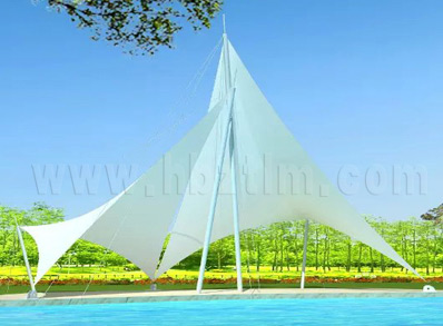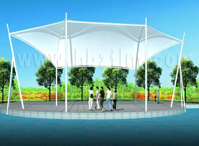 该项目为永久式景观遮阳伞,其结构为内撑式冒顶膜...
