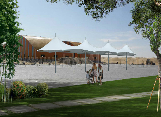 武汉科技馆张拉膜景观棚工程,该项目结构为S型景...