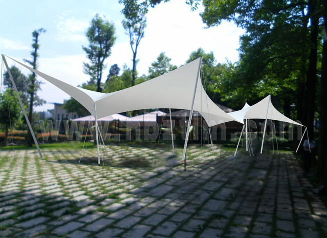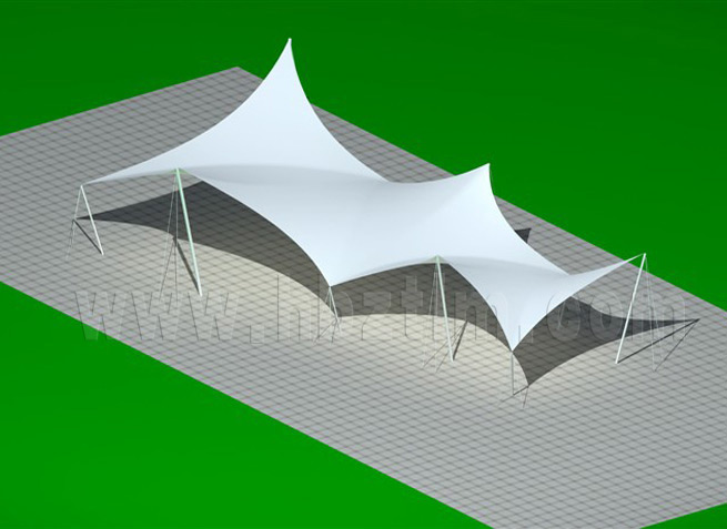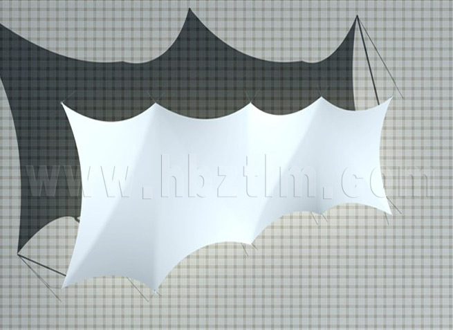 膜材采用PVDF国产或者进口建筑膜材、PTFE玻璃纤维建筑膜材、ETFE透明的永久性建筑膜材;自动放样裁剪,高频焊接,拉伸效果超强,曲线成型可千变万化;膜材质保一般可达15-20年。