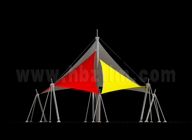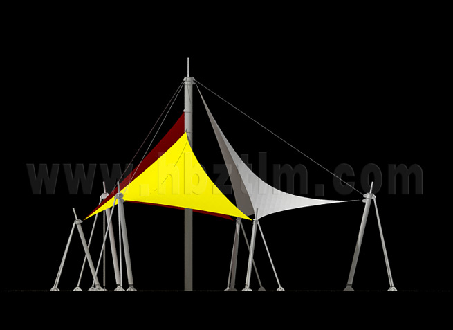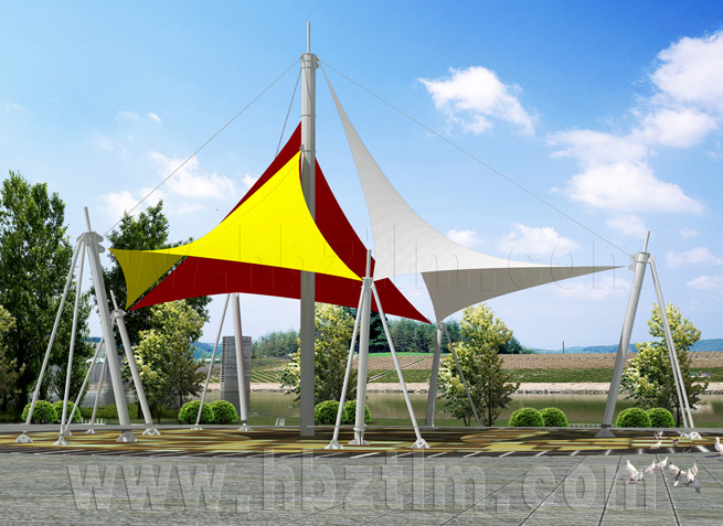 膜材采用PVDF国产或者进口建筑膜材、PTFE玻璃纤维建筑膜材、ETFE透明的永久性建筑膜材;自动放样裁剪,高频焊接,拉伸效果超强,曲线成型可千变万化;膜材质保一般可达15-20年。