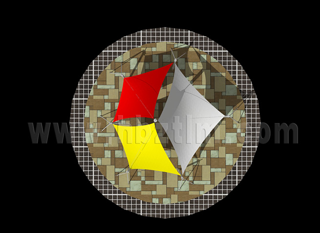 该项目为永久式景观遮阳伞,其结构为内撑式冒顶膜...