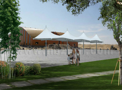 老河口市军用机场观景台张拉膜结构,其结构以钢...