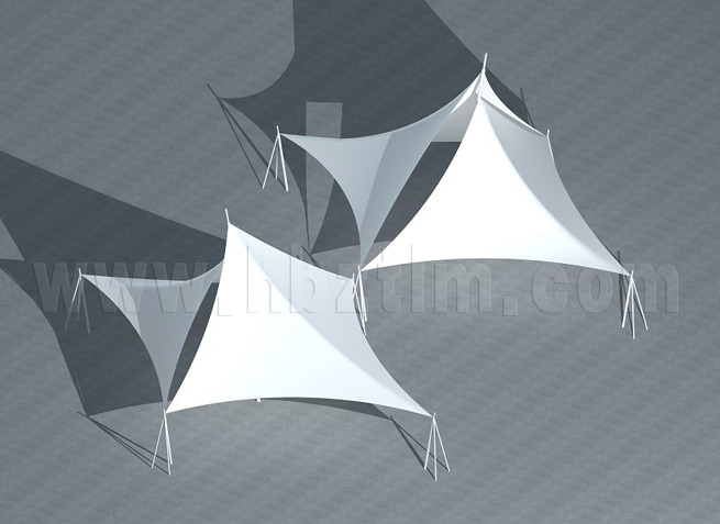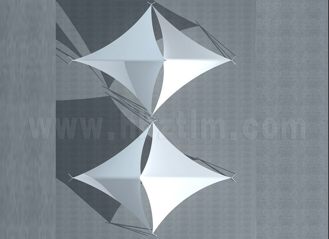 膜材采用PVDF国产或者进口建筑膜材、PTFE玻璃纤维建筑膜材、ETFE透明的永久性建筑膜材;自动放样裁剪,高频焊接,拉伸效果超强,曲线成型可千变万化;膜材质保一般可达15-20年。