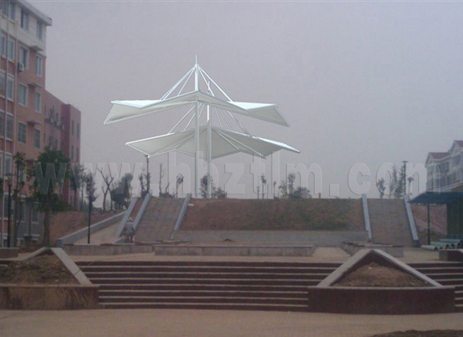 膜材采用PVDF国产或者进口建筑膜材、PTFE玻璃纤维建筑膜材、ETFE透明的永久性建筑膜材;自动放样裁剪,高频焊接,拉伸效果超强,曲线成型可千变万化;膜材质保一般可达15-20年。