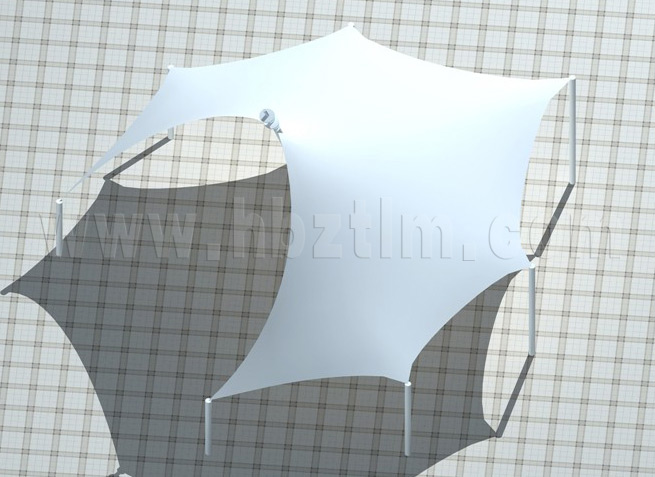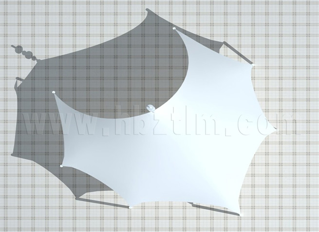 膜材采用PVDF国产或者进口建筑膜材、PTFE玻璃纤维建筑膜材、ETFE透明的永久性建筑膜材;自动放样裁剪,高频焊接,拉伸效果超强,曲线成型可千变万化;膜材质保一般可达15-20年。