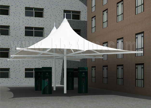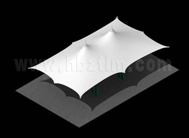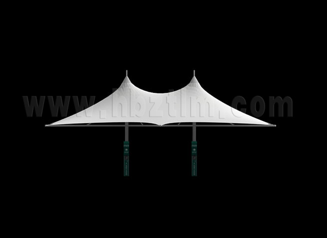 膜材采用PVDF国产或者进口建筑膜材、PTFE玻璃纤维建筑膜材、ETFE透明的永久性建筑膜材;自动放样裁剪,高频焊接,拉伸效果超强,曲线成型可千变万化;膜材质保一般可达15-20年。