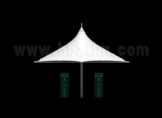 该项目为永久式景观遮阳伞,其结构为内撑式冒顶膜...