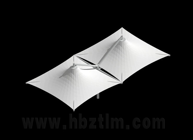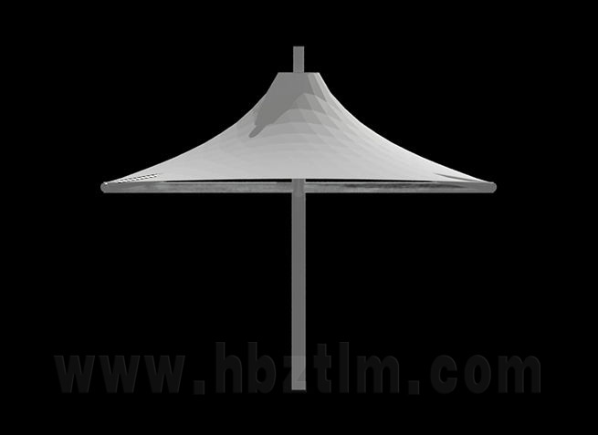 该项目为永久式景观遮阳伞,其结构为内撑式冒顶膜...