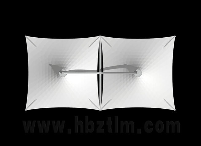 膜材采用PVDF国产或者进口建筑膜材、PTFE玻璃纤维建筑膜材、ETFE透明的永久性建筑膜材;自动放样裁剪,高频焊接,拉伸效果超强,曲线成型可千变万化;膜材质保一般可达15-20年。