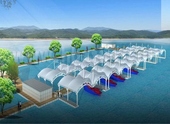 膜材采用PVDF国产或者进口建筑膜材、PTFE玻璃纤维建筑膜材、ETFE透明的永久性建筑膜材;自动放样裁剪,高频焊接,拉伸效果超强,曲线成型可千变万化;膜材质保一般可达15-20年。