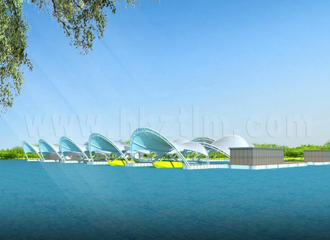 膜材采用PVDF国产或者进口建筑膜材、PTFE玻璃纤维建筑膜材、ETFE透明的永久性建筑膜材;自动放样裁剪,高频焊接,拉伸效果超强,曲线成型可千变万化;膜材质保一般可达15-20年。