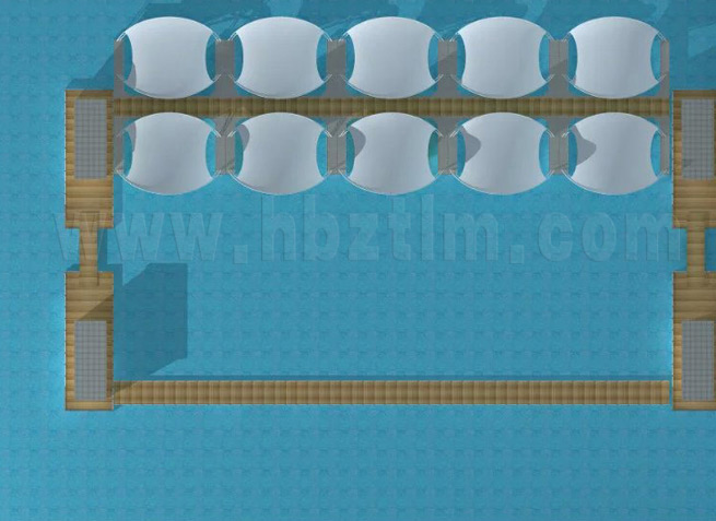 膜材采用PVDF国产或者进口建筑膜材、PTFE玻璃纤维建筑膜材、ETFE透明的永久性建筑膜材;自动放样裁剪,高频焊接,拉伸效果超强,曲线成型可千变万化;膜材质保一般可达15-20年。