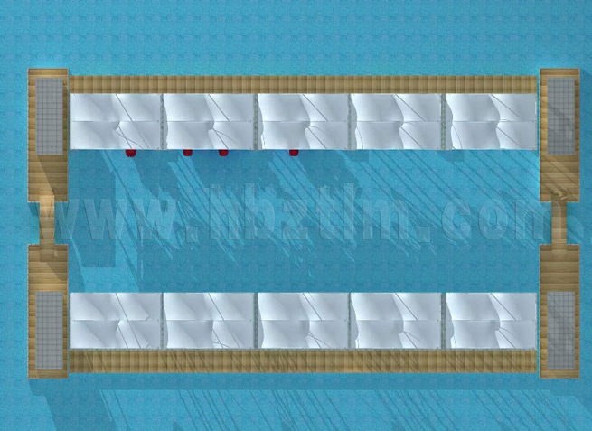 膜材采用PVDF国产或者进口建筑膜材、PTFE玻璃纤维建筑膜材、ETFE透明的永久性建筑膜材;自动放样裁剪,高频焊接,拉伸效果超强,曲线成型可千变万化;膜材质保一般可达15-20年。