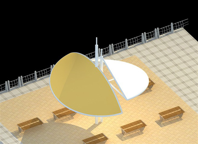 膜材采用PVDF国产或者进口建筑膜材、PTFE玻璃纤维建筑膜材、ETFE透明的永久性建筑膜材;自动放样裁剪,高频焊接,拉伸效果超强,曲线成型可千变万化;膜材质保一般可达15-20年。