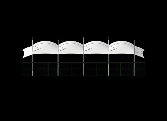 膜材采用PVDF国产或者进口建筑膜材、PTFE玻璃纤维建筑膜材、ETFE透明的永久性建筑膜材;自动放样裁剪,高频焊接,拉伸效果超强,曲线成型可千变万化;膜材质保一般可达15-20年。
