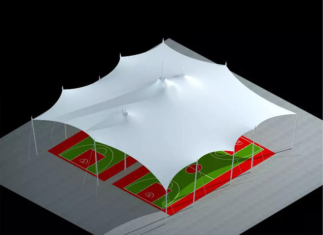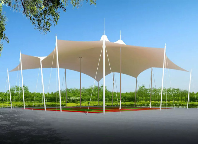 膜材采用PVDF国产或者进口建筑膜材、PTFE玻璃纤维建筑膜材、ETFE透明的永久性建筑膜材;自动放样裁剪,高频焊接,拉伸效果超强,曲线成型可千变万化;膜材质保一般可达15-20年。