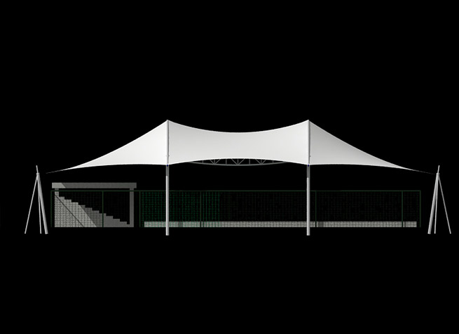 膜材采用PVDF国产或者进口建筑膜材、PTFE玻璃纤维建筑膜材、ETFE透明的永久性建筑膜材;自动放样裁剪,高频焊接,拉伸效果超强,曲线成型可千变万化;膜材质保一般可达15-20年。
