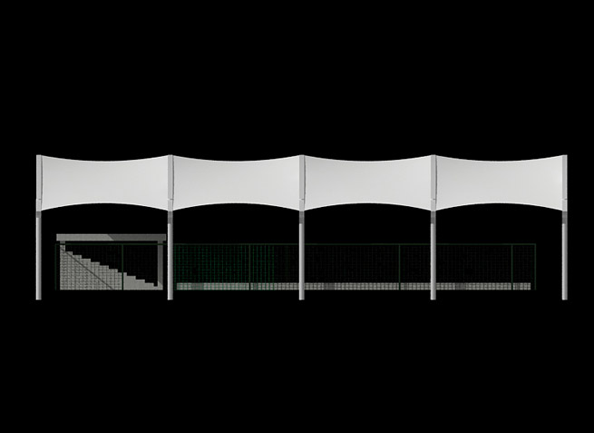 膜材采用PVDF国产或者进口建筑膜材、PTFE玻璃纤维建筑膜材、ETFE透明的永久性建筑膜材;自动放样裁剪,高频焊接,拉伸效果超强,曲线成型可千变万化;膜材质保一般可达15-20年。