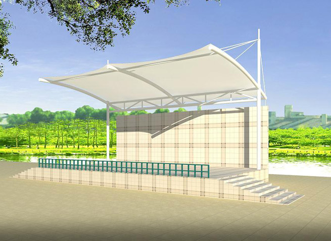 膜材采用PVDF国产或者进口建筑膜材、PTFE玻璃纤维建筑膜材、ETFE透明的永久性建筑膜材;自动放样裁剪,高频焊接,拉伸效果超强,曲线成型可千变万化;膜材质保一般可达15-20年。