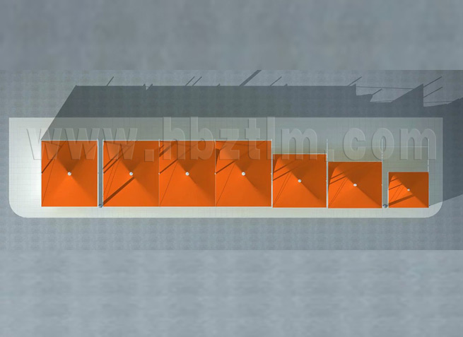 膜材采用PVDF国产或者进口建筑膜材、PTFE玻璃纤维建筑膜材、ETFE透明的永久性建筑膜材;自动放样裁剪,高频焊接,拉伸效果超强,曲线成型可千变万化;膜材质保一般可达15-20年。