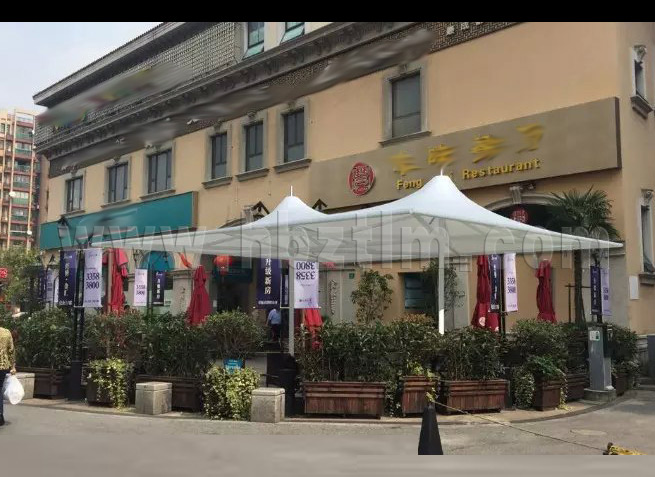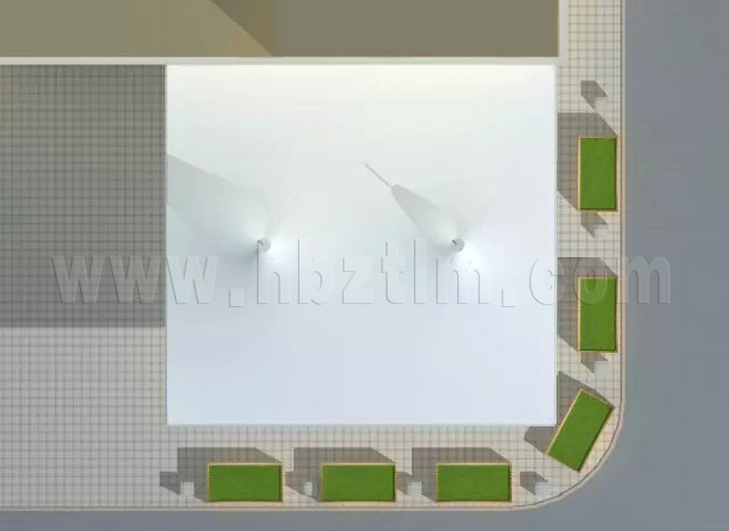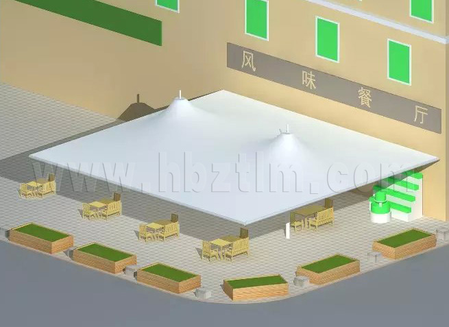 膜材采用PVDF国产或者进口建筑膜材、PTFE玻璃纤维建筑膜材、ETFE透明的永久性建筑膜材;自动放样裁剪,高频焊接,拉伸效果超强,曲线成型可千变万化;膜材质保一般可达15-20年。