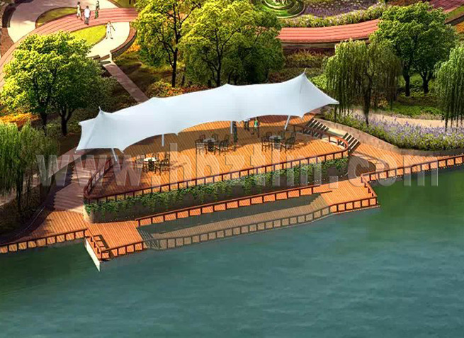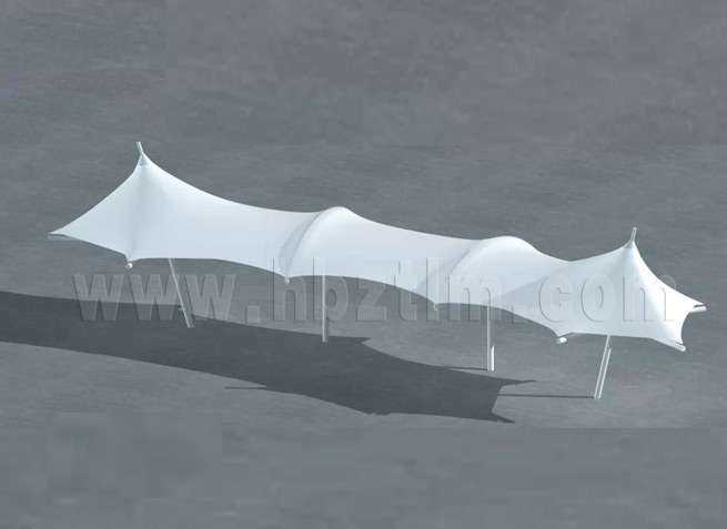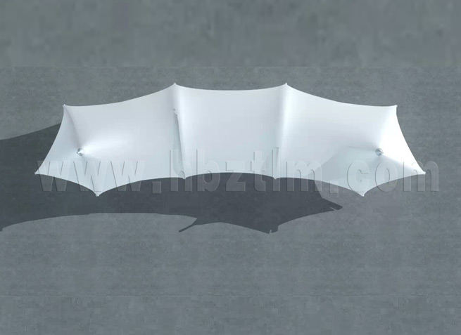 膜材采用PVDF国产或者进口建筑膜材、PTFE玻璃纤维建筑膜材、ETFE透明的永久性建筑膜材;自动放样裁剪,高频焊接,拉伸效果超强,曲线成型可千变万化;膜材质保一般可达15-20年。