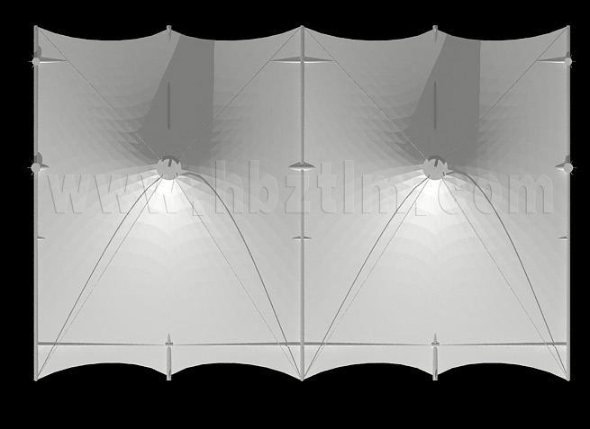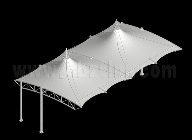 膜材采用PVDF国产或者进口建筑膜材、PTFE玻璃纤维建筑膜材、ETFE透明的永久性建筑膜材;自动放样裁剪,高频焊接,拉伸效果超强,曲线成型可千变万化;膜材质保一般可达15-20年。