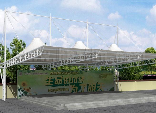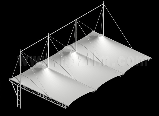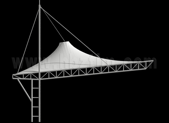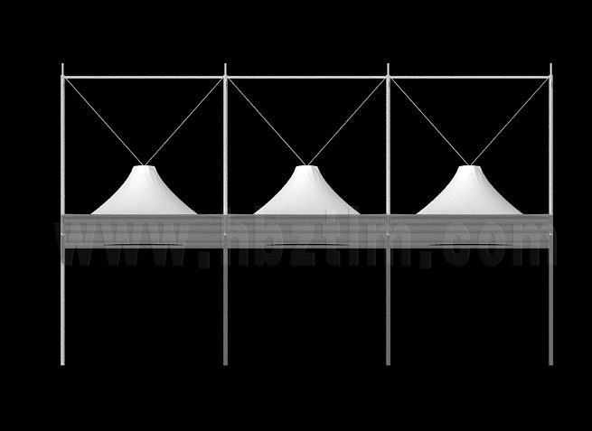 膜材采用PVDF国产或者进口建筑膜材、PTFE玻璃纤维建筑膜材、ETFE透明的永久性建筑膜材;自动放样裁剪,高频焊接,拉伸效果超强,曲线成型可千变万化;膜材质保一般可达15-20年。