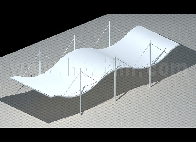 膜材采用PVDF国产或者进口建筑膜材、PTFE玻璃纤维建筑膜材、ETFE透明的永久性建筑膜材;自动放样裁剪,高频焊接,拉伸效果超强,曲线成型可千变万化;膜材质保一般可达15-20年。