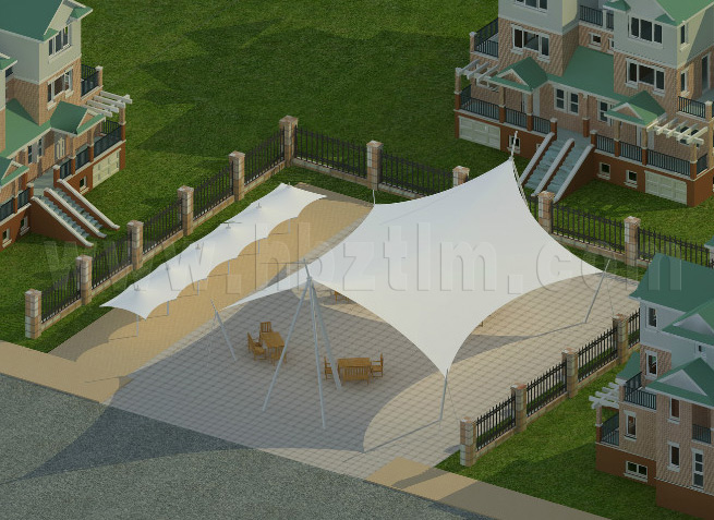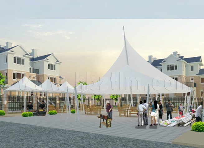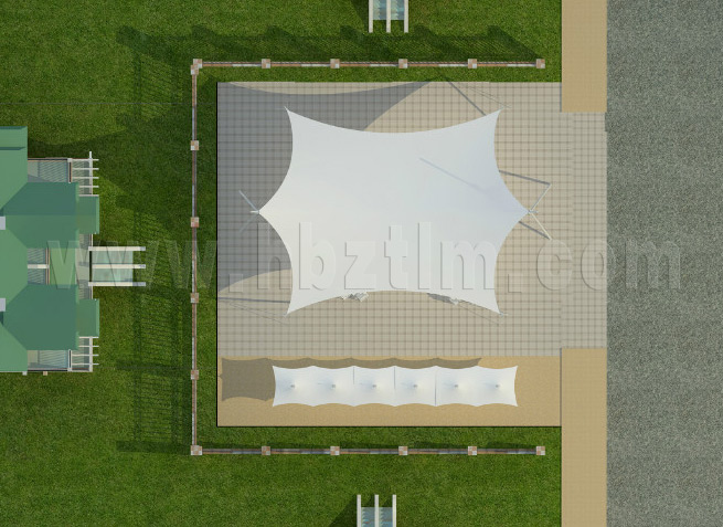 膜材采用PVDF国产或者进口建筑膜材、PTFE玻璃纤维建筑膜材、ETFE透明的永久性建筑膜材;自动放样裁剪,高频焊接,拉伸效果超强,曲线成型可千变万化;膜材质保一般可达15-20年。