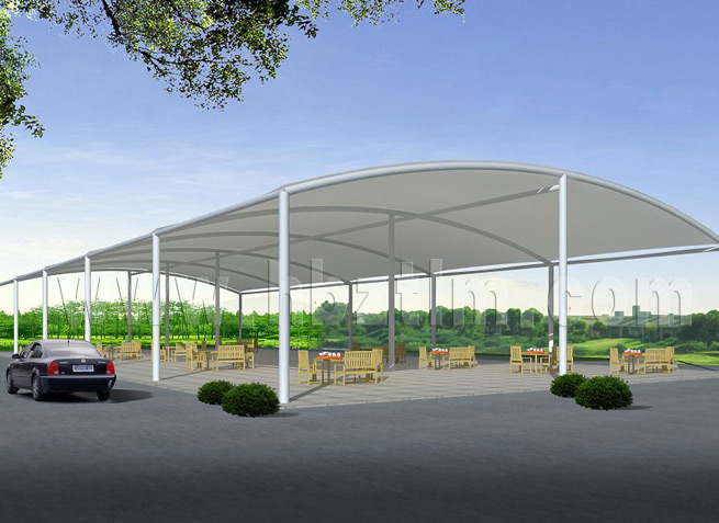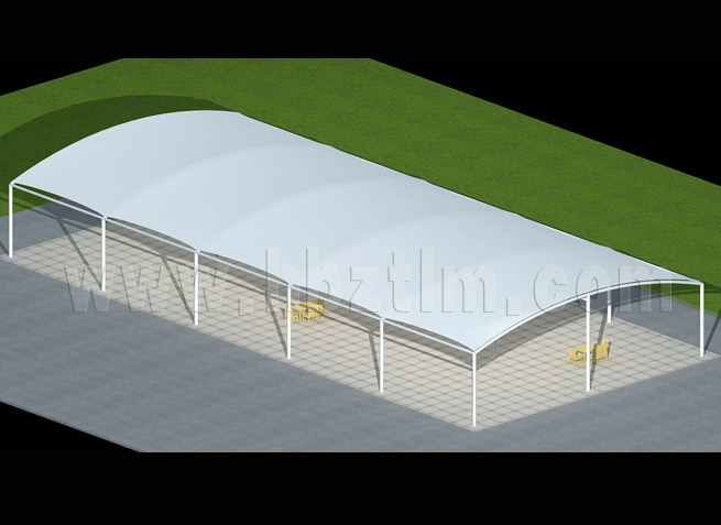 膜材采用PVDF国产或者进口建筑膜材、PTFE玻璃纤维建筑膜材、ETFE透明的永久性建筑膜材;自动放样裁剪,高频焊接,拉伸效果超强,曲线成型可千变万化;膜材质保一般可达15-20年。