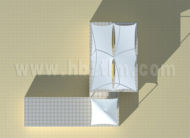 膜材采用PVDF国产或者进口建筑膜材、PTFE玻璃纤维建筑膜材、ETFE透明的永久性建筑膜材;自动放样裁剪,高频焊接,拉伸效果超强,曲线成型可千变万化;膜材质保一般可达15-20年。