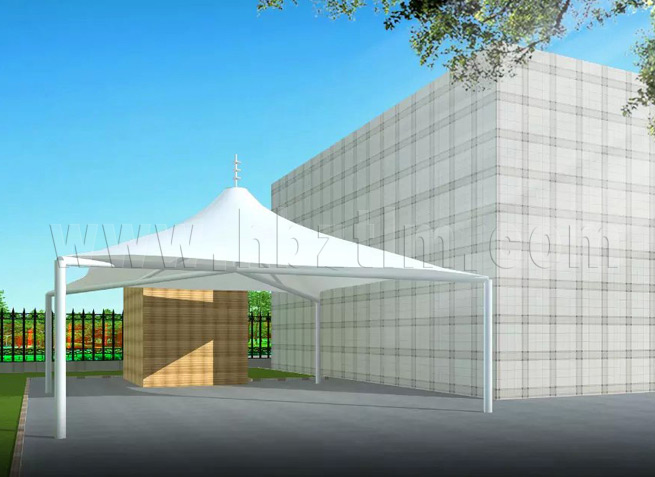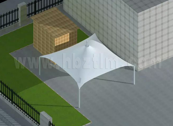 膜材采用PVDF国产或者进口建筑膜材、PTFE玻璃纤维建筑膜材、ETFE透明的永久性建筑膜材;自动放样裁剪,高频焊接,拉伸效果超强,曲线成型可千变万化;膜材质保一般可达15-20年。