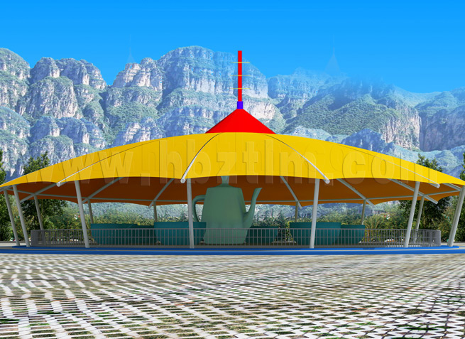 膜材采用PVDF国产或者进口建筑膜材、PTFE玻璃纤维建筑膜材、ETFE透明的永久性建筑膜材;自动放样裁剪,高频焊接,拉伸效果超强,曲线成型可千变万化;膜材质保一般可达15-20年。