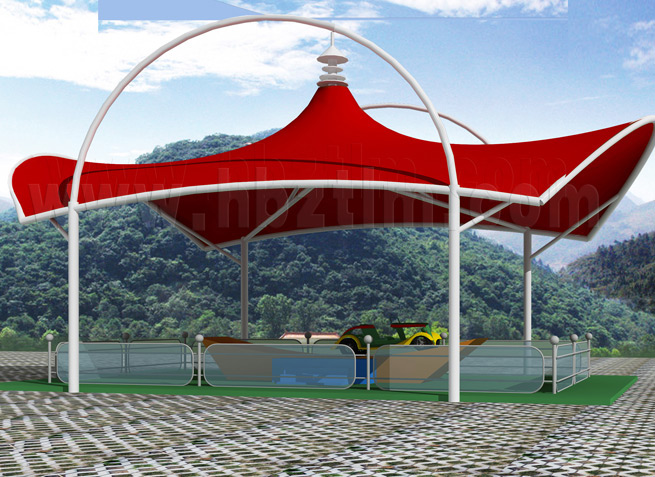 膜材采用PVDF国产或者进口建筑膜材、PTFE玻璃纤维建筑膜材、ETFE透明的永久性建筑膜材;自动放样裁剪,高频焊接,拉伸效果超强,曲线成型可千变万化;膜材质保一般可达15-20年。