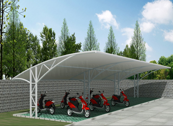 湖北凯骑公司吊塔式异形钢膜结构车棚,本项目采用...