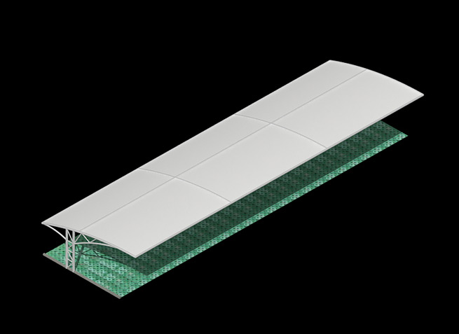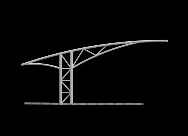 汉川吊塔式异形钢膜结构停车棚,本项目采用前软边...