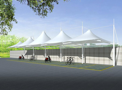 仙桃农商银行T型圆管膜结构自行车棚,本项目采用...