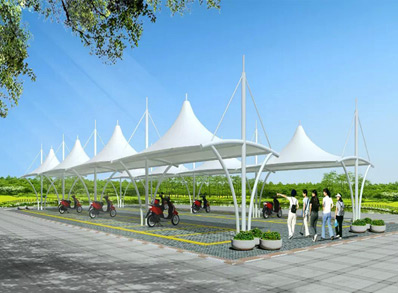 随州市审计局异型钢膜结构汽车车棚,本项目采用前...