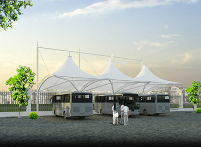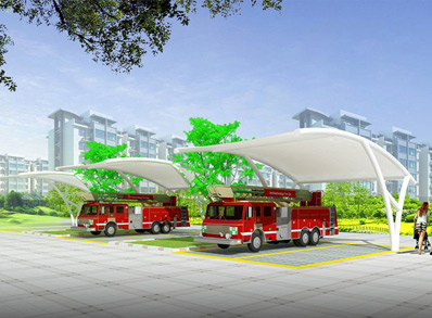 新丰县环境保护局异型钢冒顶膜结构车棚,本顶目为...