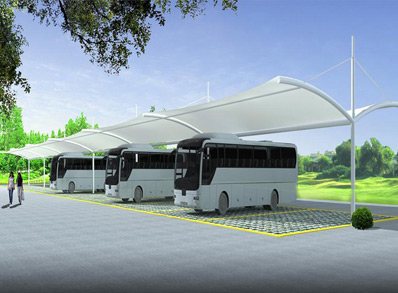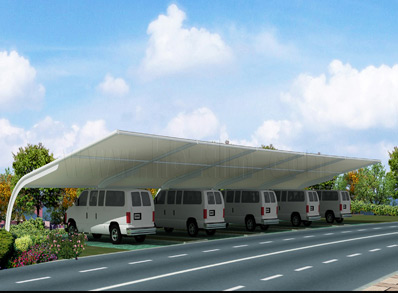 新丰县环境保护局异型钢冒顶膜结构车棚,本顶目为...