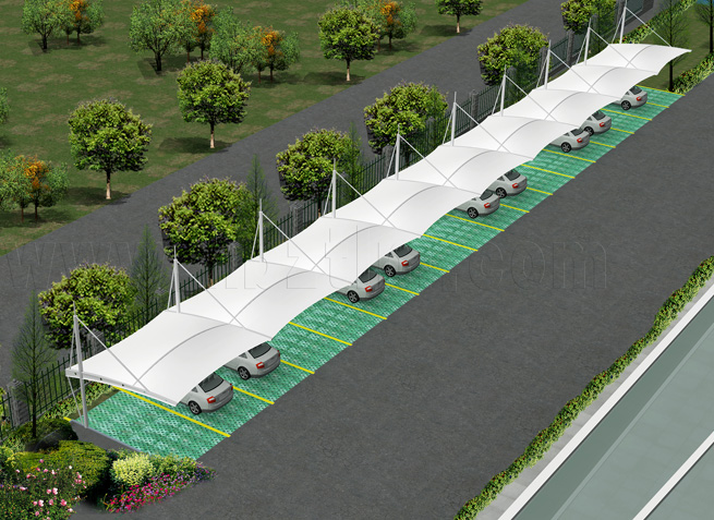 随州市审计局异型钢膜结构汽车车棚,本项目采用前...